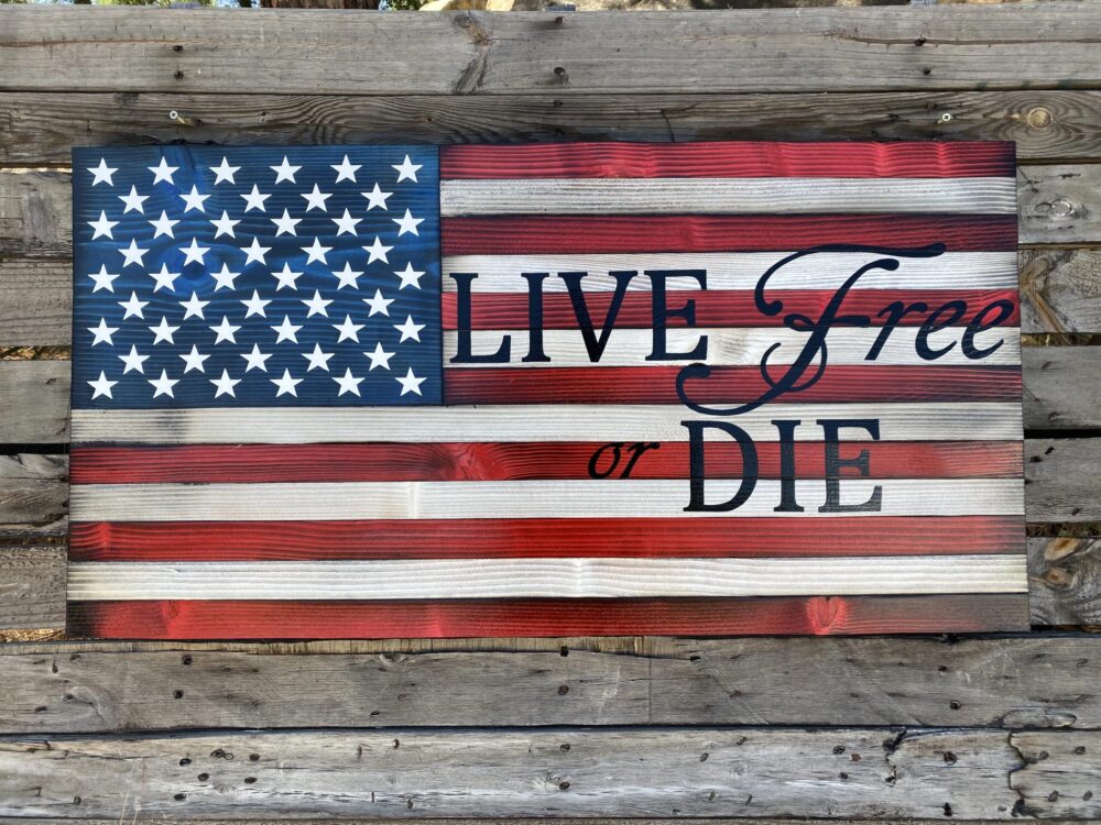 #LiveFreeOrDie #AmericanFlag #HandcraftedArt #PatrioticDecor #SpiritOfLiberty