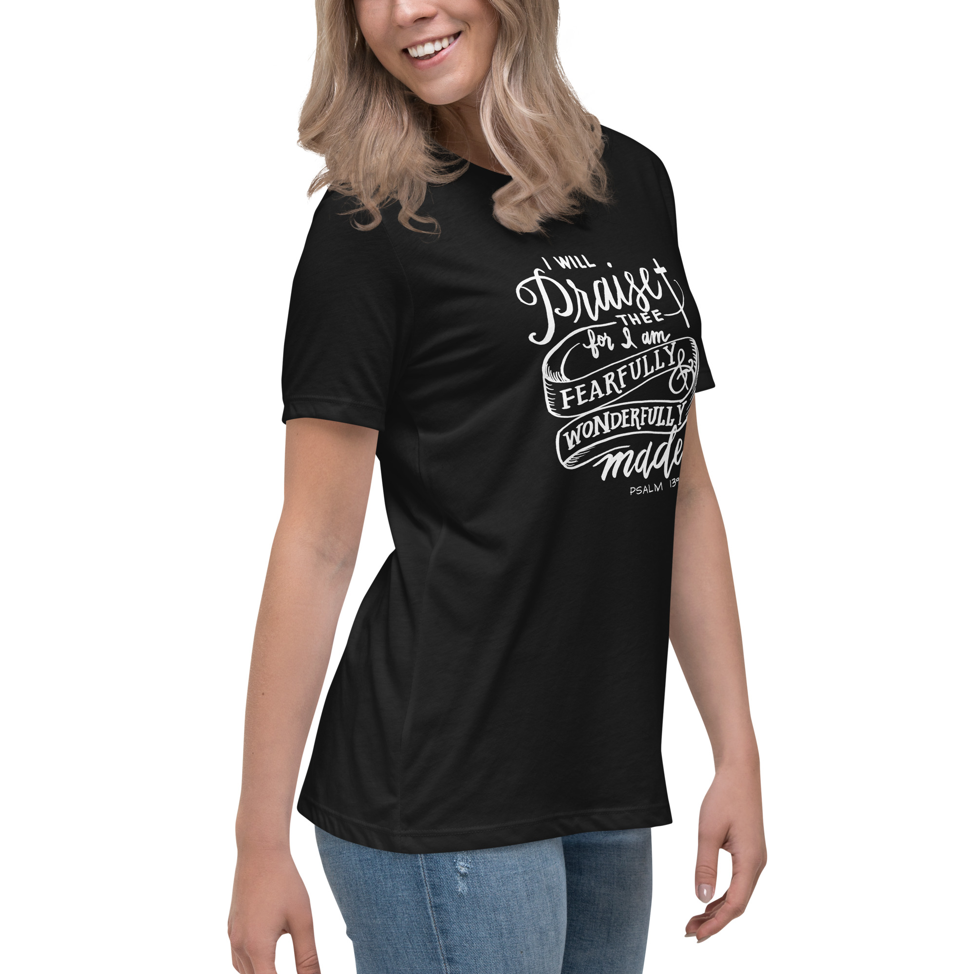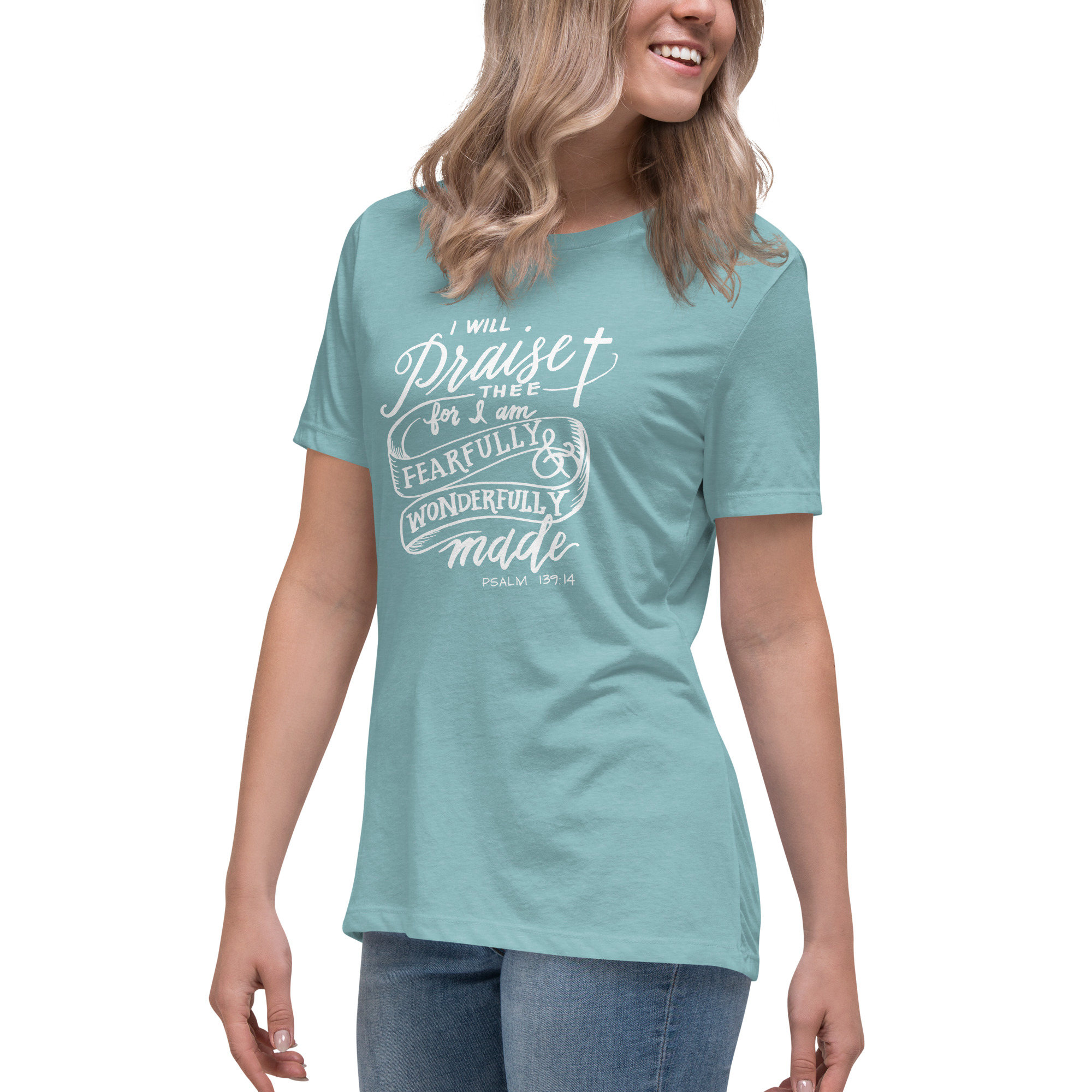 Hand lettered design of Psalm 139:14 “Praise thee for I am fearfully and wonderfully made.”